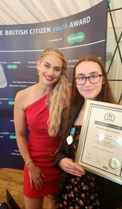 Ex pupil Rebecca, has recently been awarded a British Citizen Youth Award.  The award was presented at the Palace of Westminster by Kimberly Wyatt from the Pussy Cat Dolls.