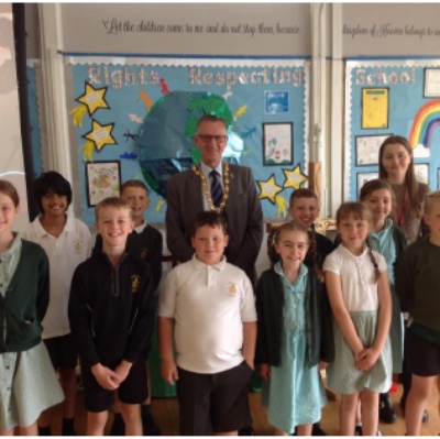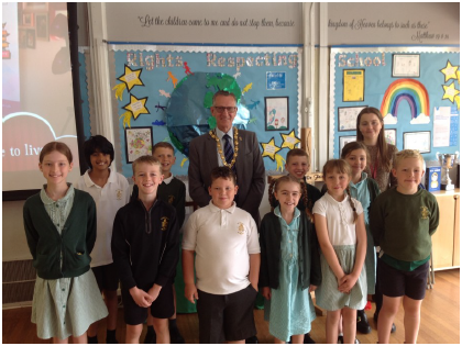 We were very lucky to have the Mayor of Nuneaton and Bedworth visit our school on Monday. He led our assemblies talking to the children about his role. The children asked lots of fantastic questions. The School Council met with the Mayor and discussed their role in school too, they thoroughly enjoyed it! The Mayor was extremely impressed with our wonderful School and children. These are some of his quotes. “Impressed with behaviour in the school.” “Excellent examples of written work.” “The school was extremely welcoming.”
